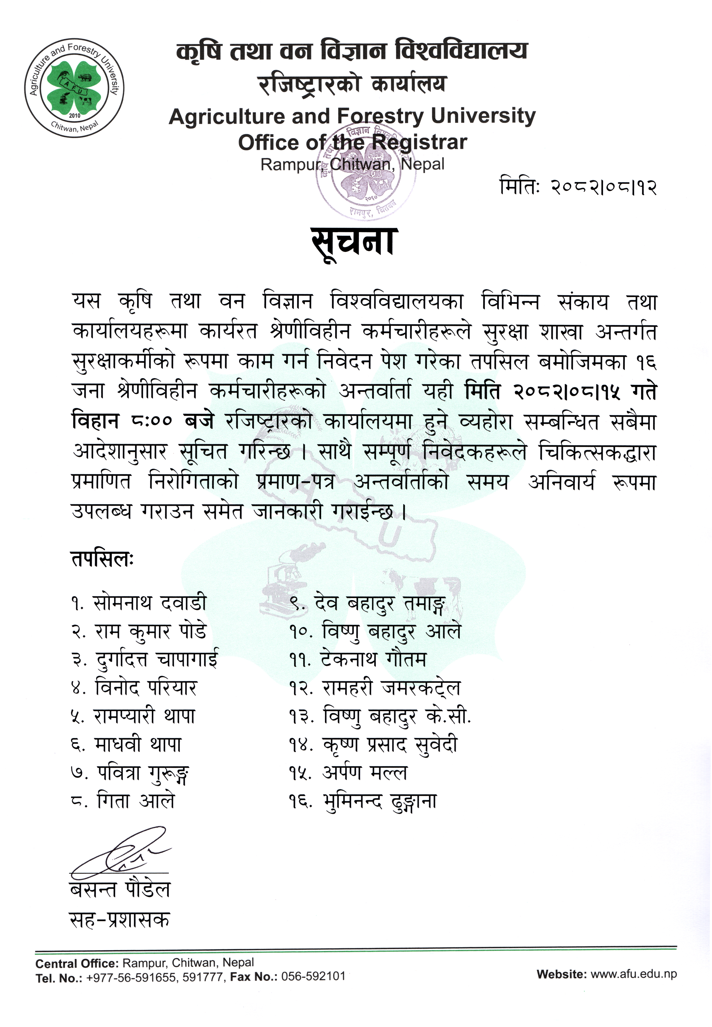 M.Sc. Forestry Entrance 2082 Valid Applicants List