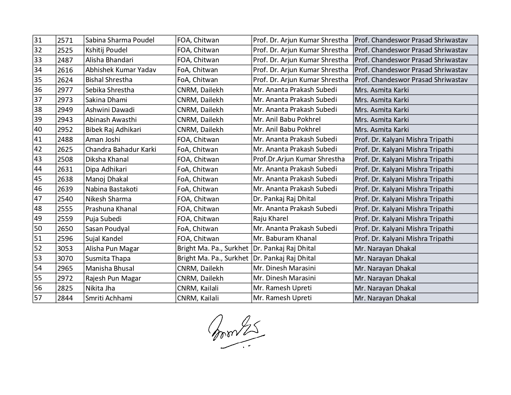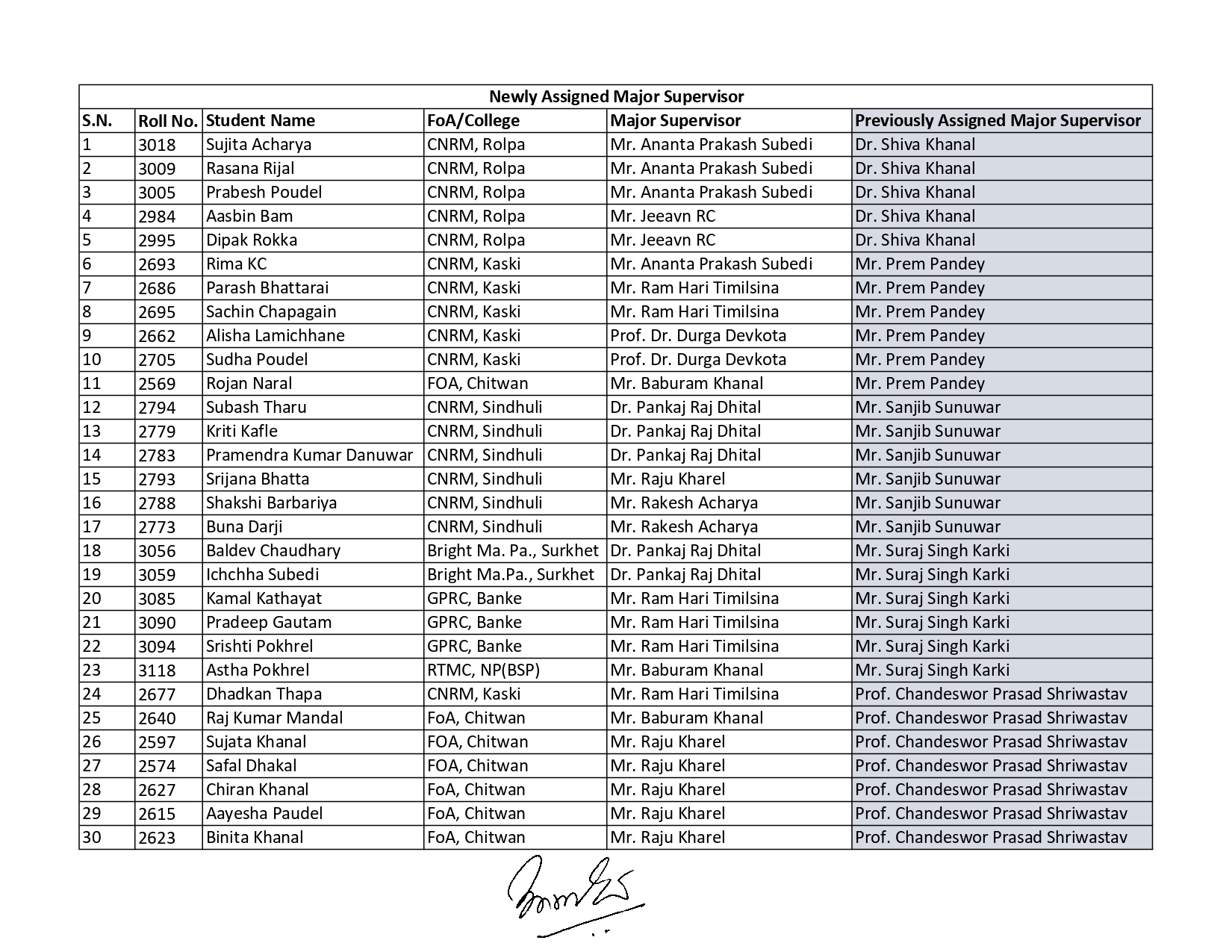 FoA - Presentation Schedule of LEE Presentation of Academic session 2077/78