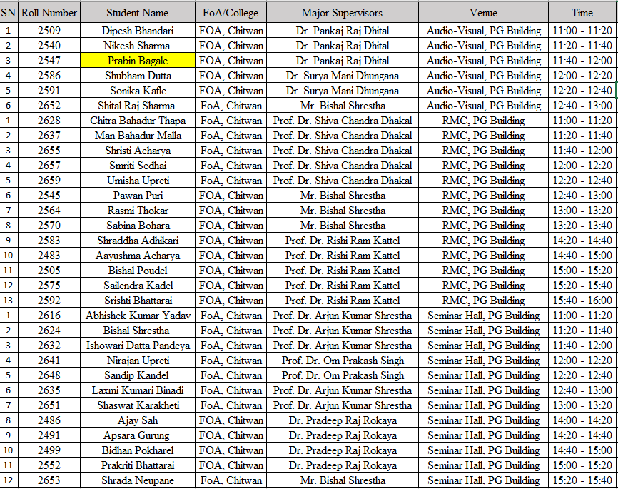 FoA - Presentation Schedule of LEE Presentation of Academic session 2077/78 - Day 3, Mangsir 23