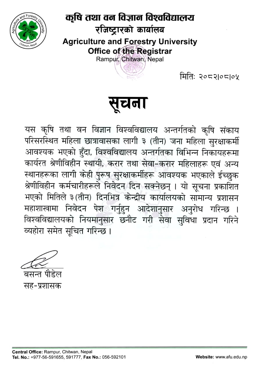 Admission Notice UDF 4th List M.Sc. Forestry 2082