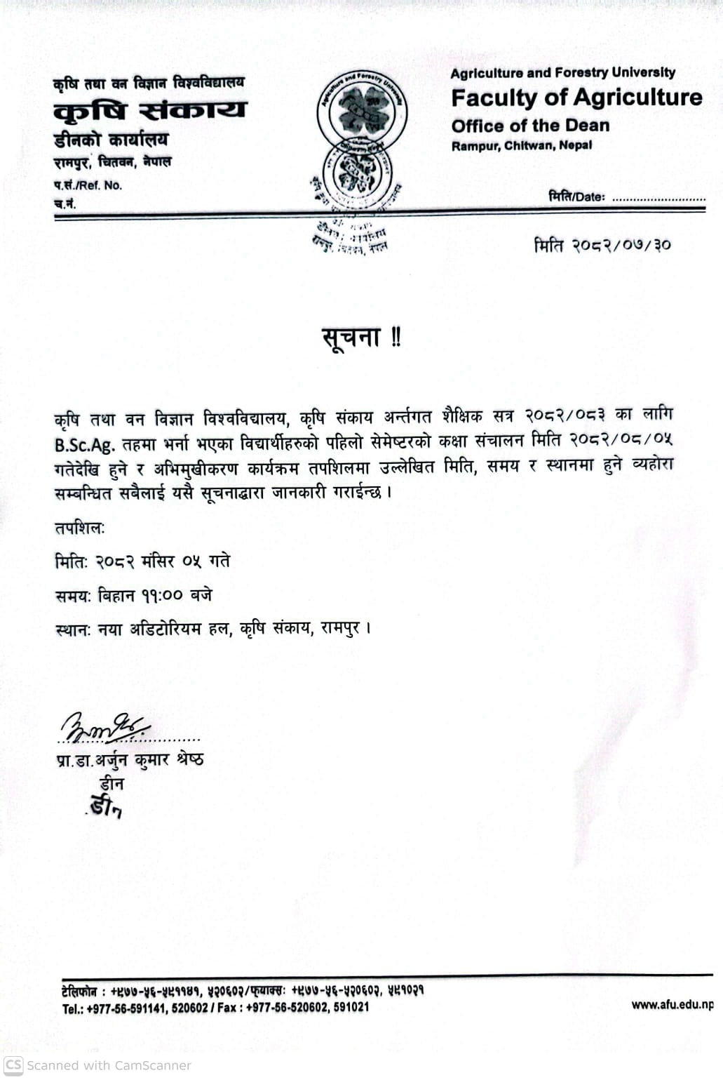CNRM - Dullu, B.Sc. Ag 3rd sem Student Transfer Notice