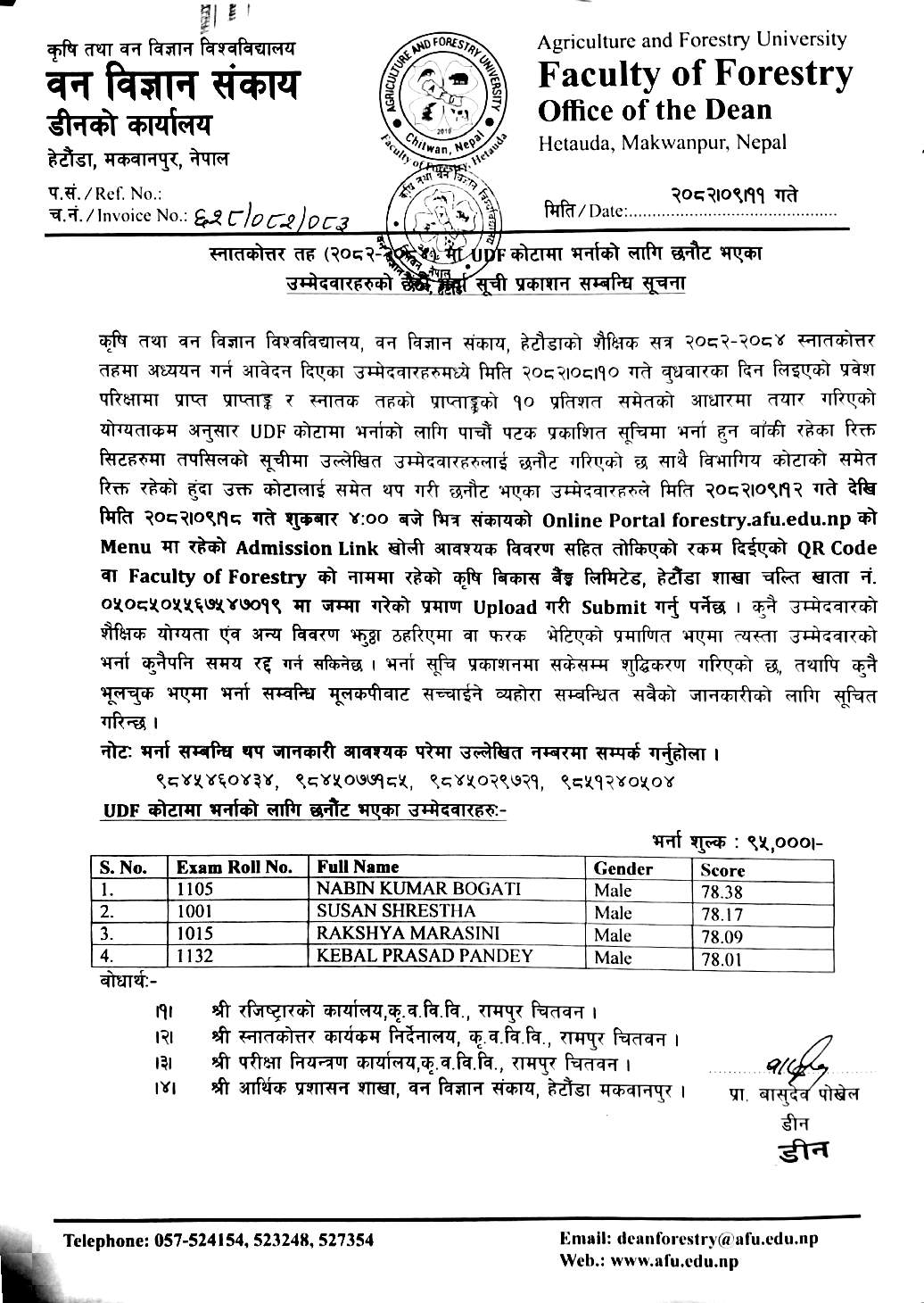 Admission Notice UDF 6th List M.Sc. Forestry 2082
