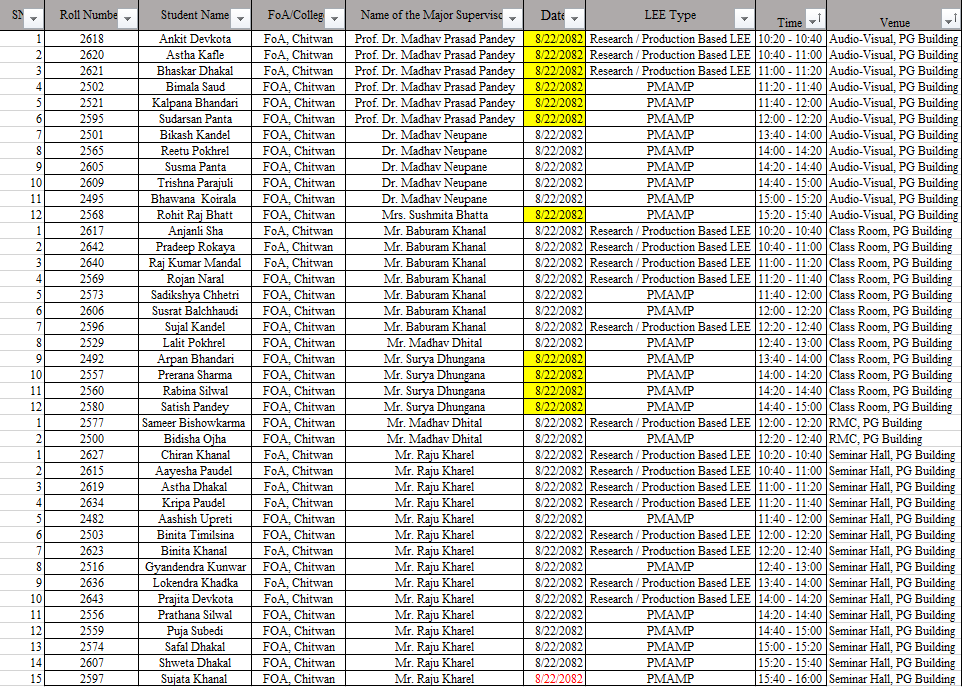FoA - Presentation Schedule of LEE Presentation of Academic session 2077/78 - Day 1, Mangsir 21