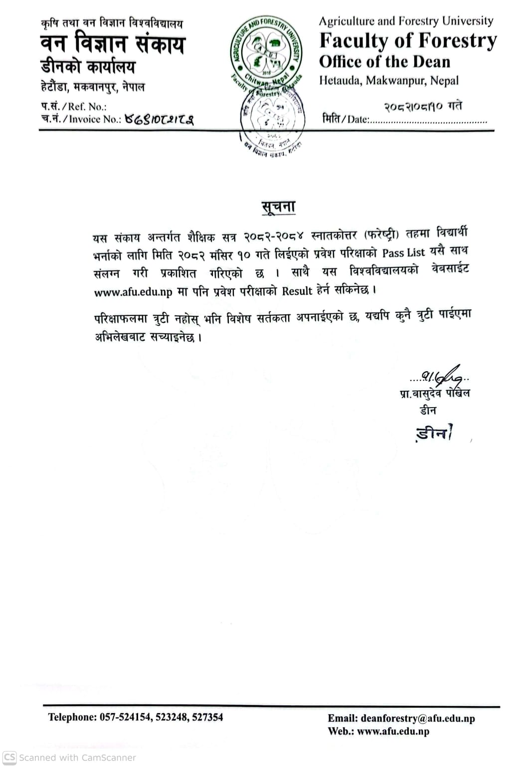 M.Sc. Forestry Entrance 2082 Valid Applicants List