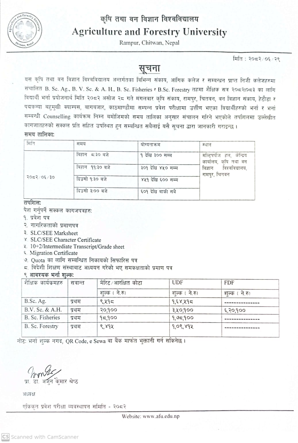 UG Admission/Counselling & Fee Structure